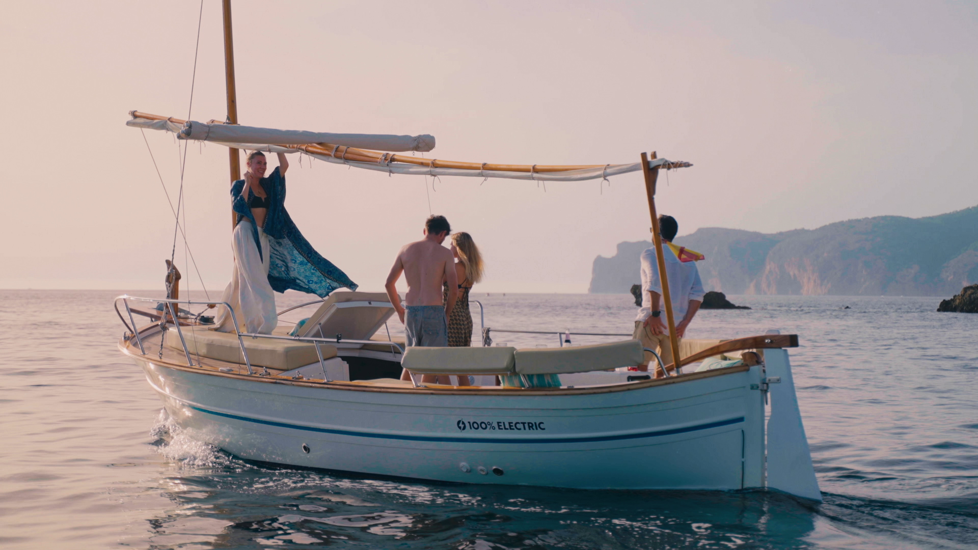 Llaut Medvolt M7 de diseño clásico y fabricación moderna, con propulsión 100% eléctrica y vela latina. La combinación perfecta para disfrutar del mar mediterráneo de forma sostenible y respetando el medio ambiente.